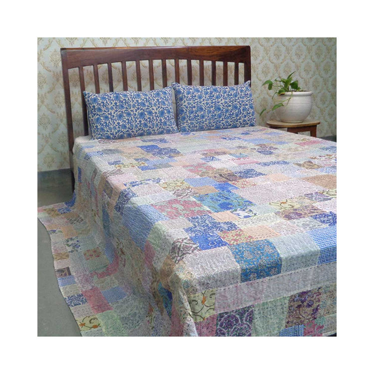 Dernière conception indienne main bloc imprimé coton Kantha couette reine taille patchwork couette fait à la main pour hôtel approvisionnement en vrac