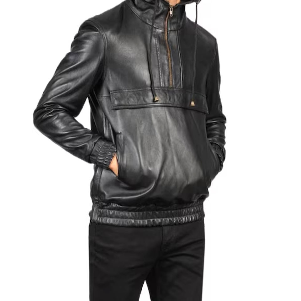 Sweat à capuche en cuir pour hommes