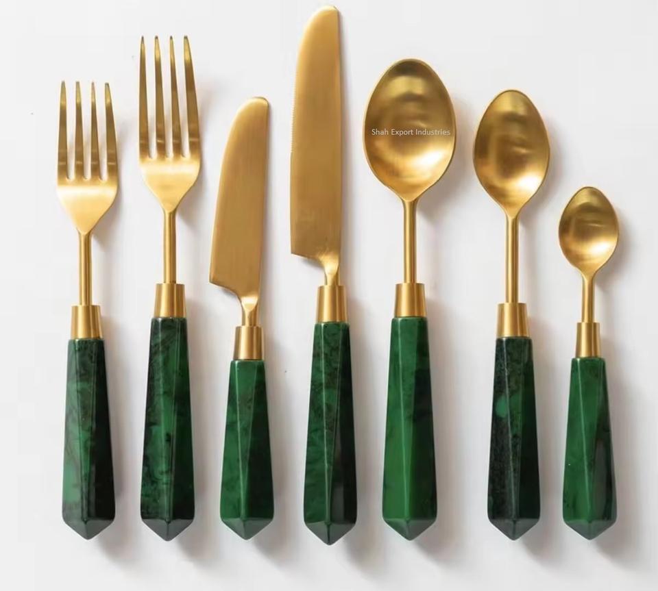 Dernier modèle Ensemble de couverts en métal avec manche en résine rose fini or pour la maison et le mariage Ensembles de couverts de vaisselle