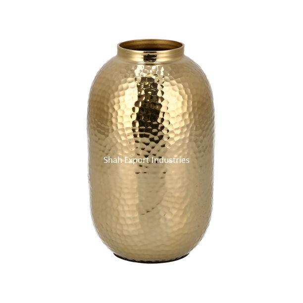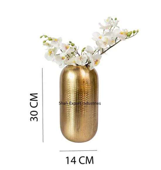 Vase à fleurs en métal finition martelée dorée pour la décoration de mariage et de maison Centre de table