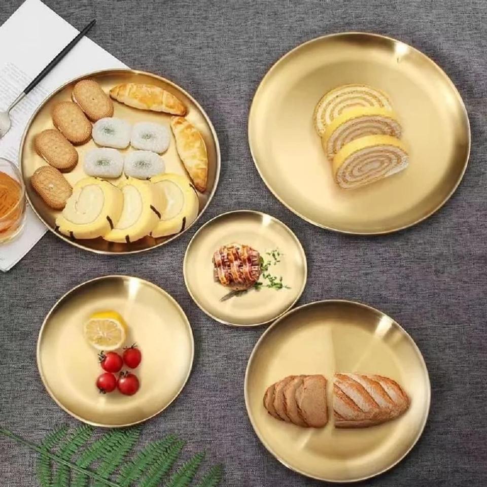 Assiette en métal de dernière conception pour la restauration, vaisselle de service, ustensiles de cuisine domestiques, assiette de table de qualité alimentaire, meilleur produit