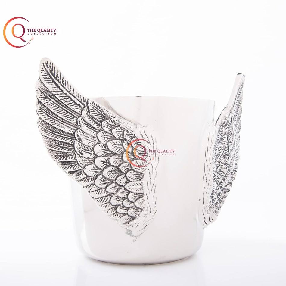 Seau à glace pour vin en métal de la marque QC30, design dernier cri, acier inoxydable de haute qualité, finition argentée, poignée en forme de plume, 5L, articles de bar