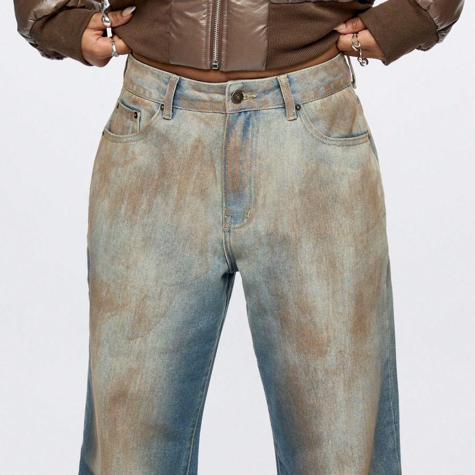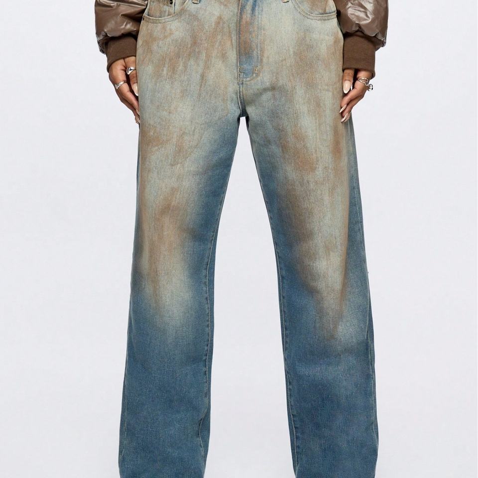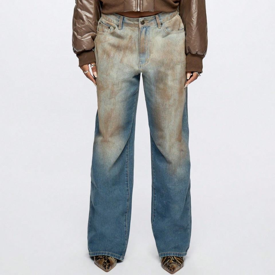Dernier design de jeans baggy délavés, style Y2K vintage, coupe droite, streetwear hip-hop, pantalon large en denim pour femmes