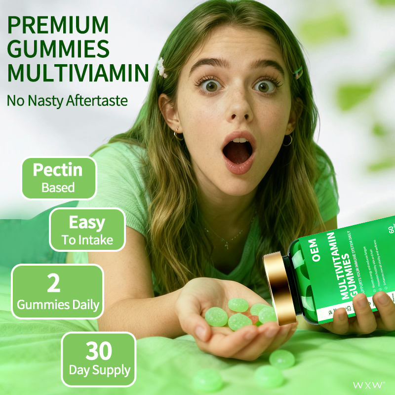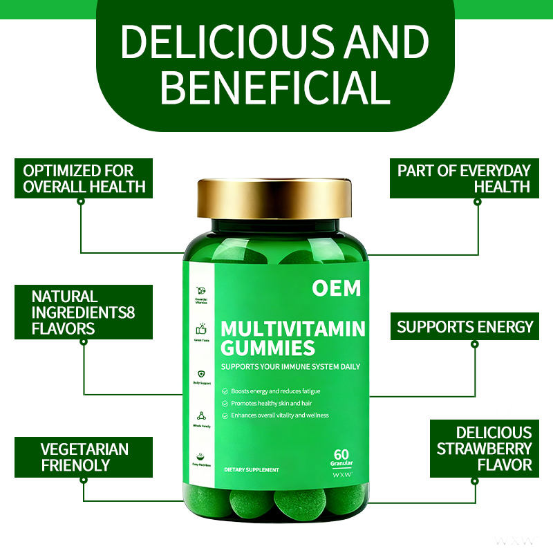 Gummies multivitaminés au design moderne, stimulent l'énergie et réduisent la fatigue, compléments essentiels en vitamines et nutriments