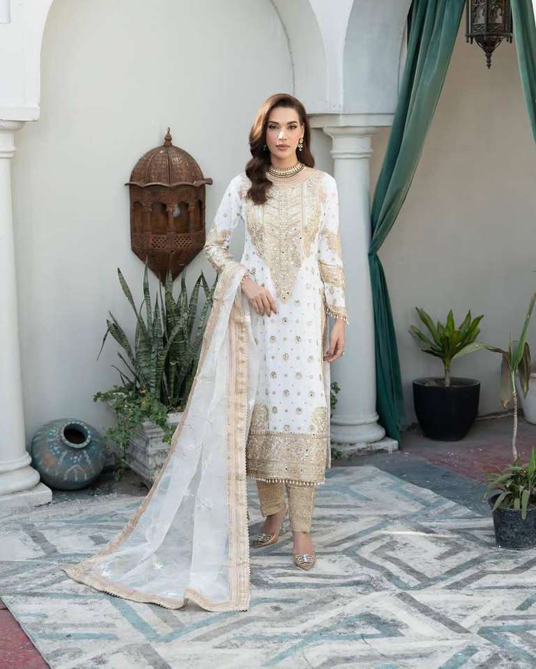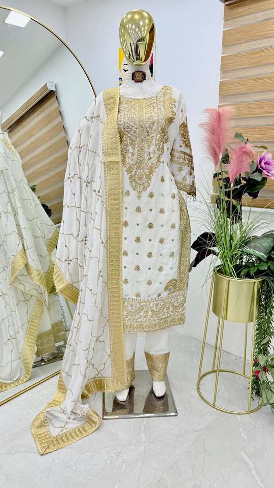 Latest Design New Designer Party Wear Chinon Silk Cording Sequence and Thread Embroidered Designer Top With Pant and Dupatta