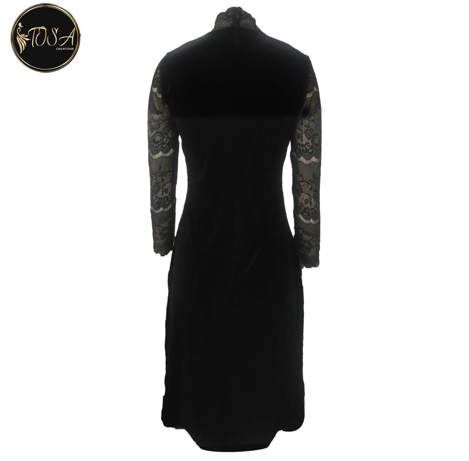 Nom du produit:Robe de soirée sexy en velours et dentelle à manches longues pour le Nouvel An