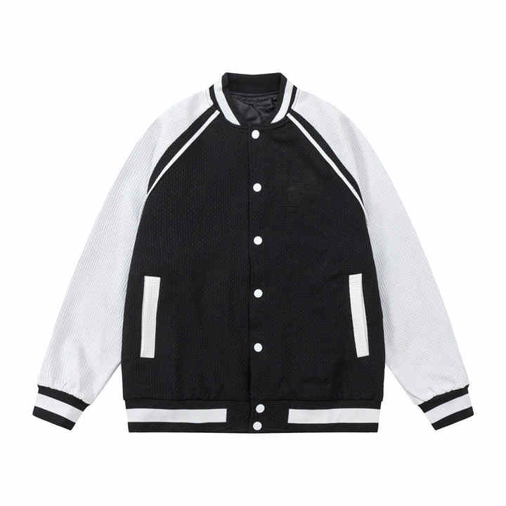 Dernier design OEM, veste universitaire personnalisée avec blocs de couleur, boutons à glissière, logo personnalisé, vestes de course pour hommes et femmes