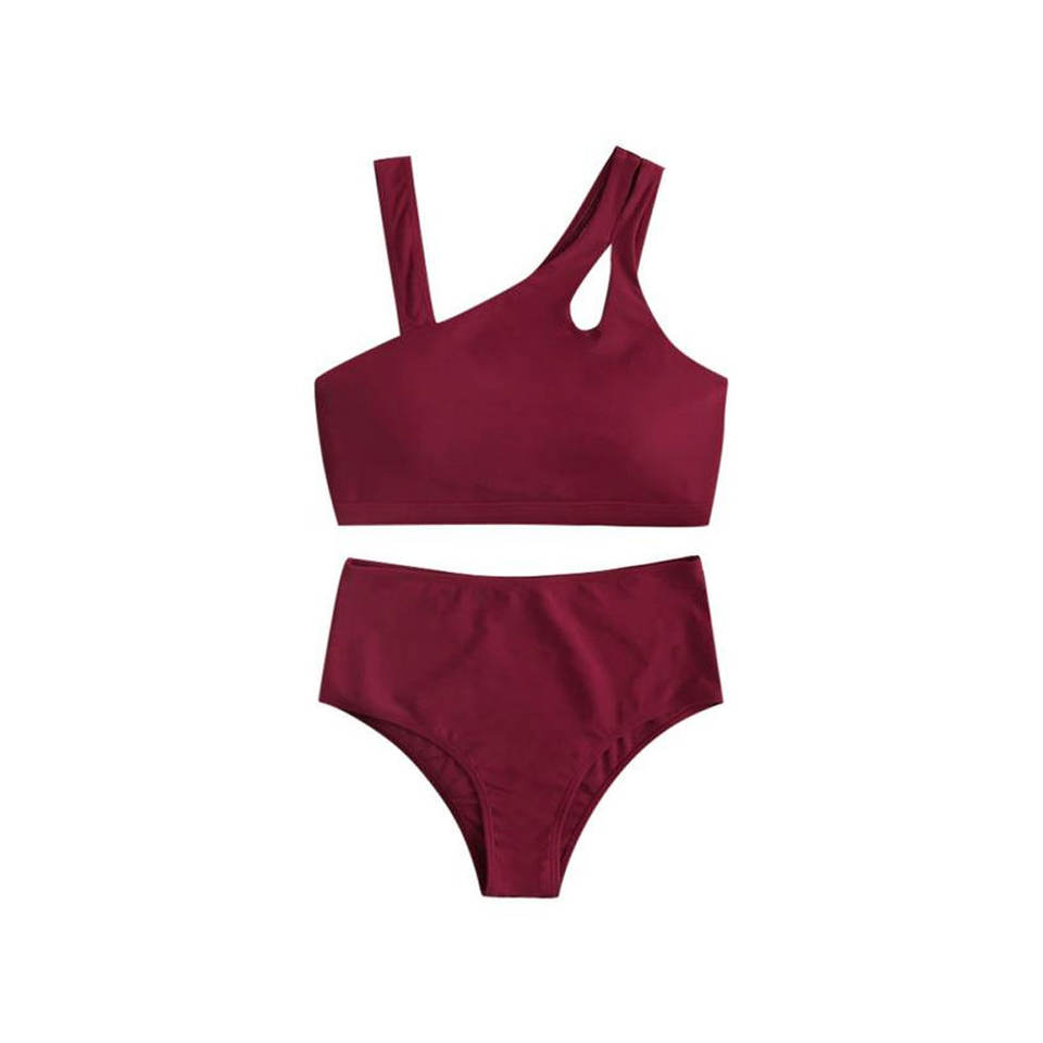 Maillot de bain asymétrique deux pièces, Design dernier cri, Bikini taille haute, couleur unie, vêtements de plage