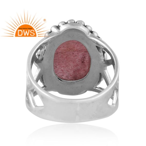 Dernier modèle Bague empilable en argent sterling 925 oxydé naturel avec quartz fraise et pierres précieuses Bijoux pour femmes Cadeau pour elle