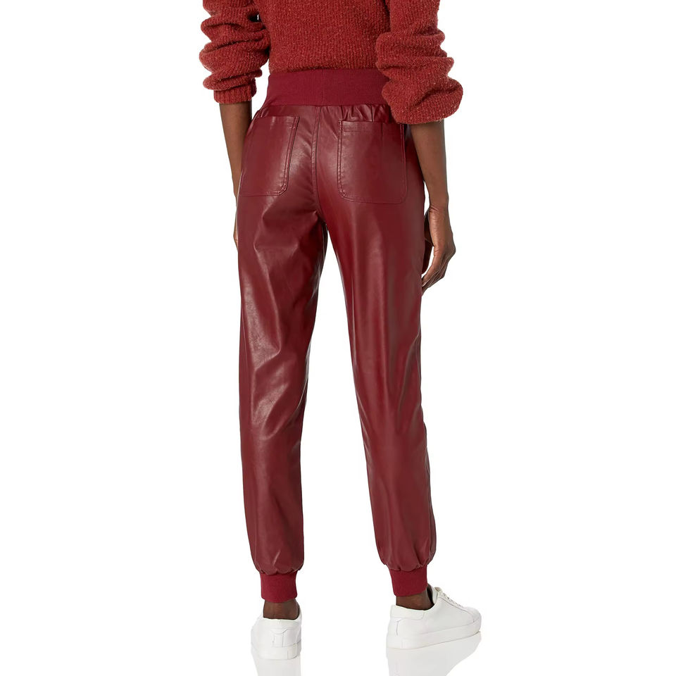 Dernier design Pantalon décontracté coupe-vent en cuir PU pour femmes Taille élastique Meilleur prix de gros