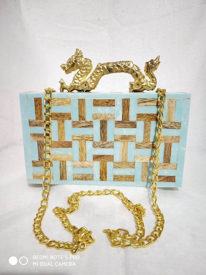 Dernier modèle de sac de soirée en bois à double poignée en résine Accessoires de mode perlés pour femmes à la mode