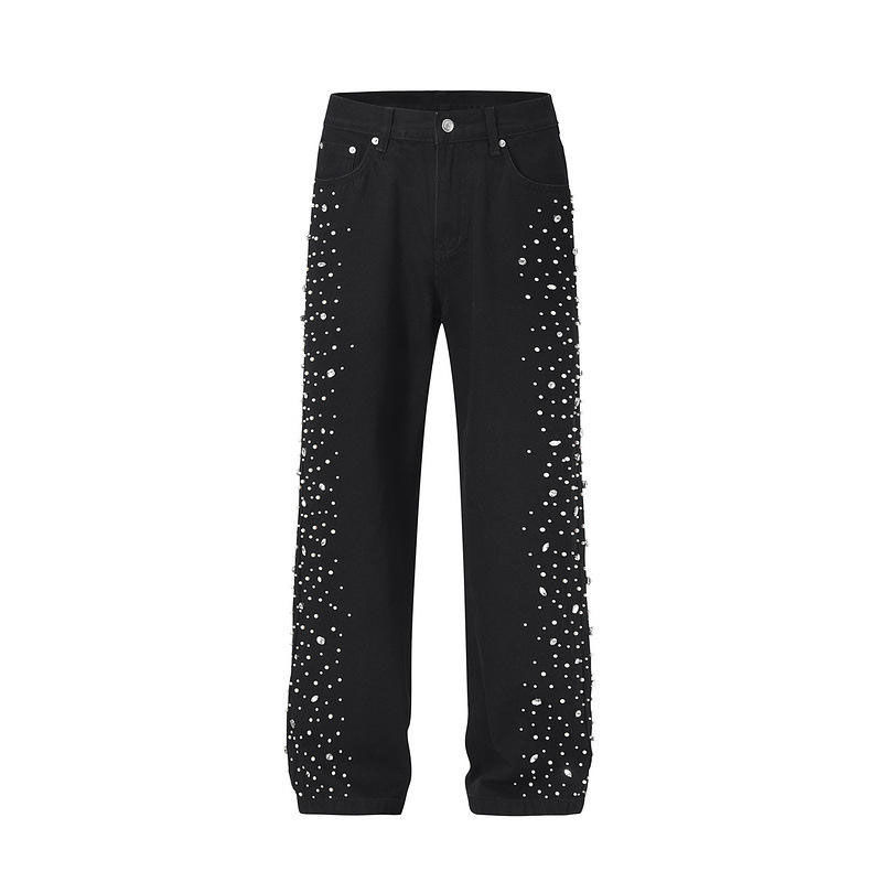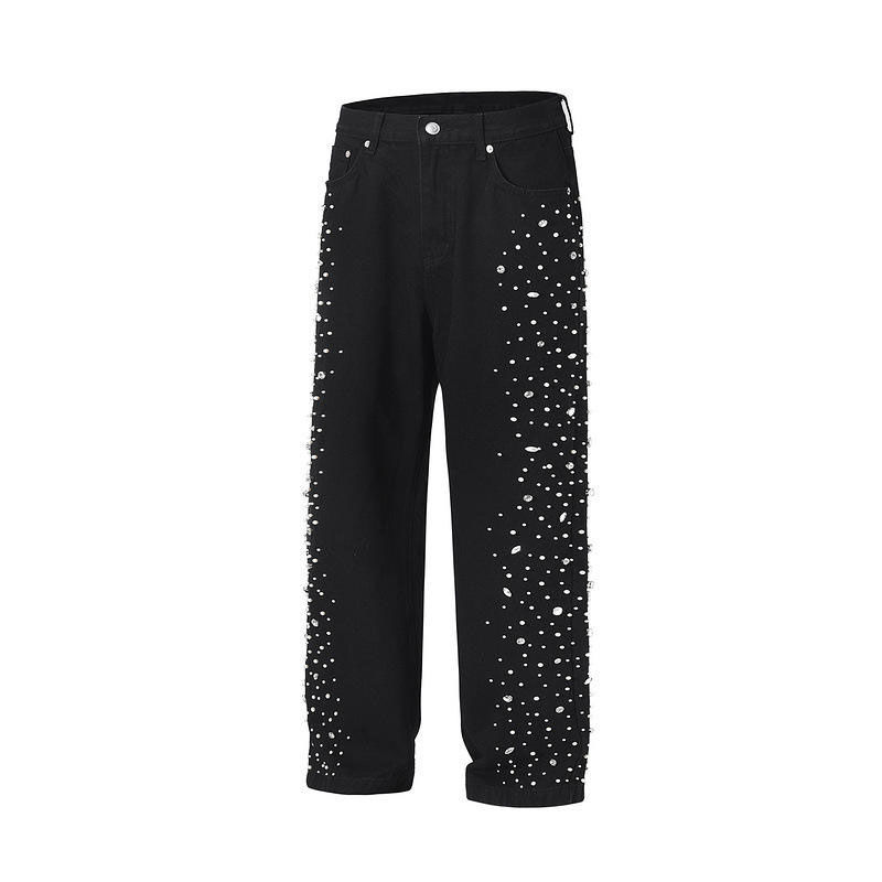 Jeans à strass de dernière génération, streetwear, double genouillère, jeans baggy de type charpentier, denim diamanté, jeans à strass pour femmes