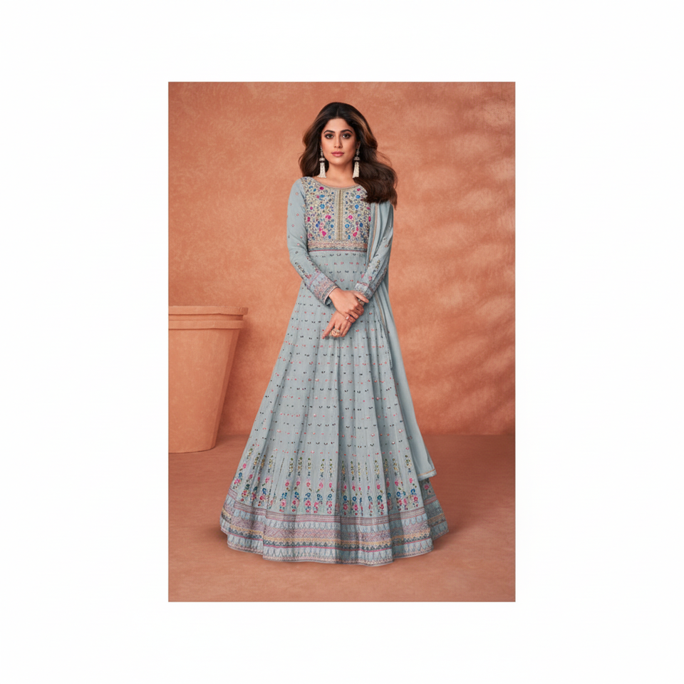 Costume de robe Anarkali élégant en paillettes pour mariage et fête au prix de gros de l'inde