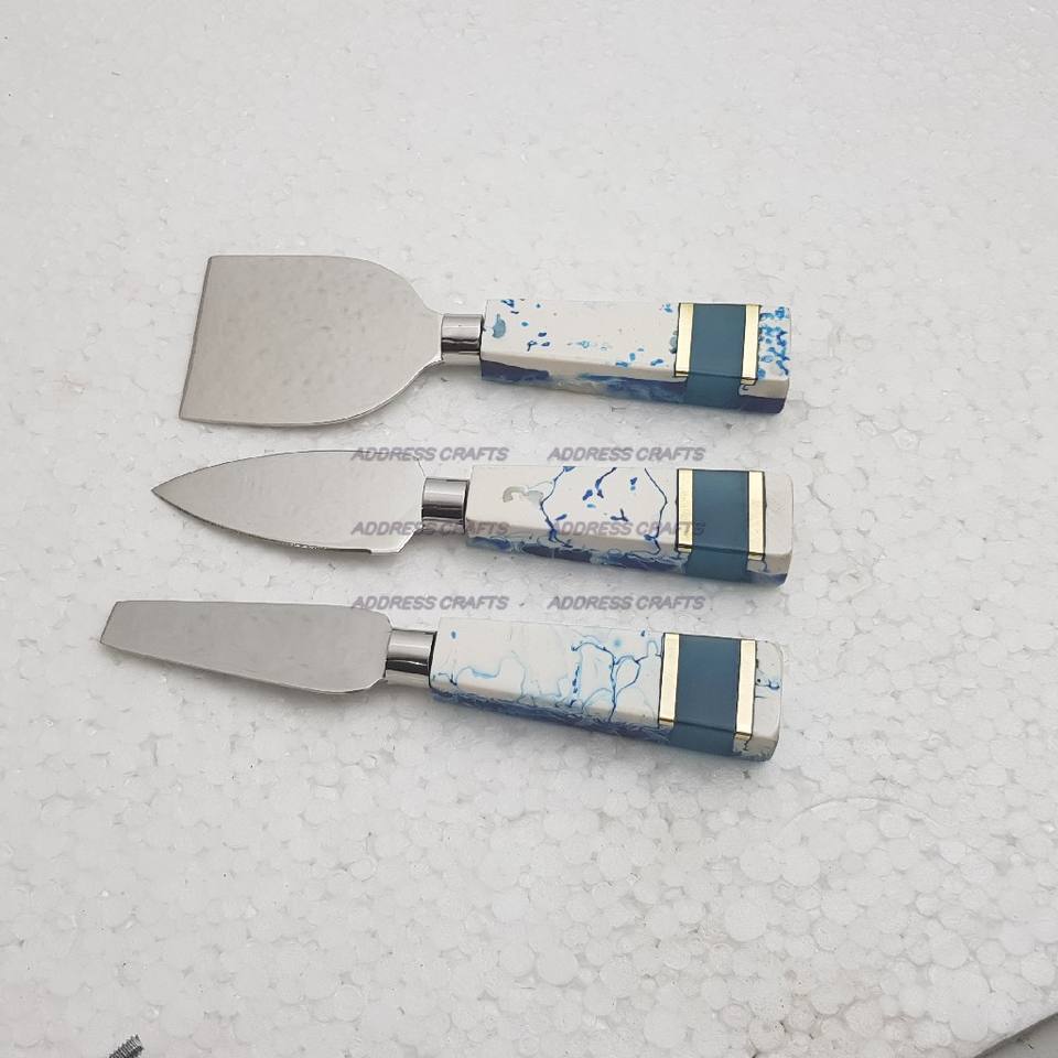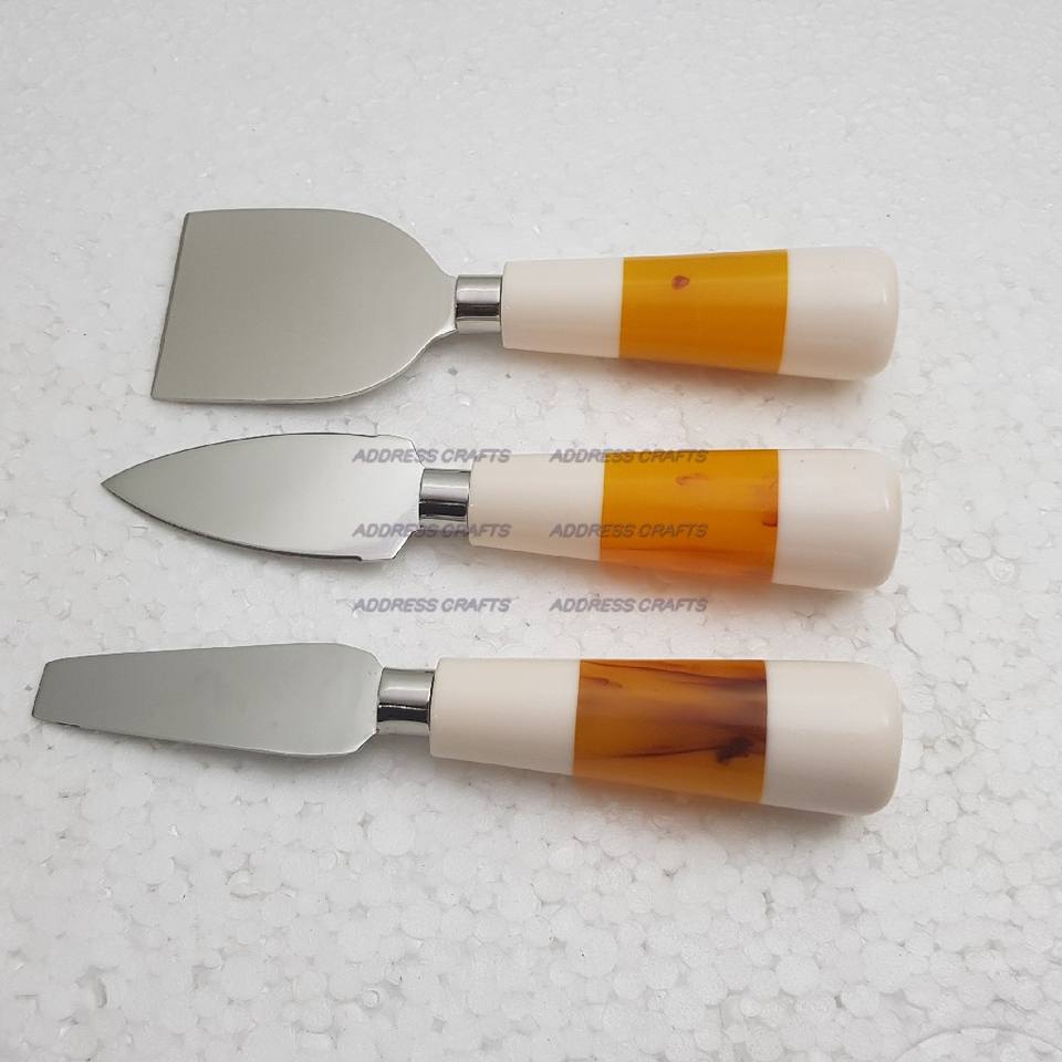 Ensemble de couteaux à fromage en acier inoxydable au design moderne et manche en résine, décoration de table, service à domicile, hôtel, ustensiles de cuisine, utilisé au meilleur prix