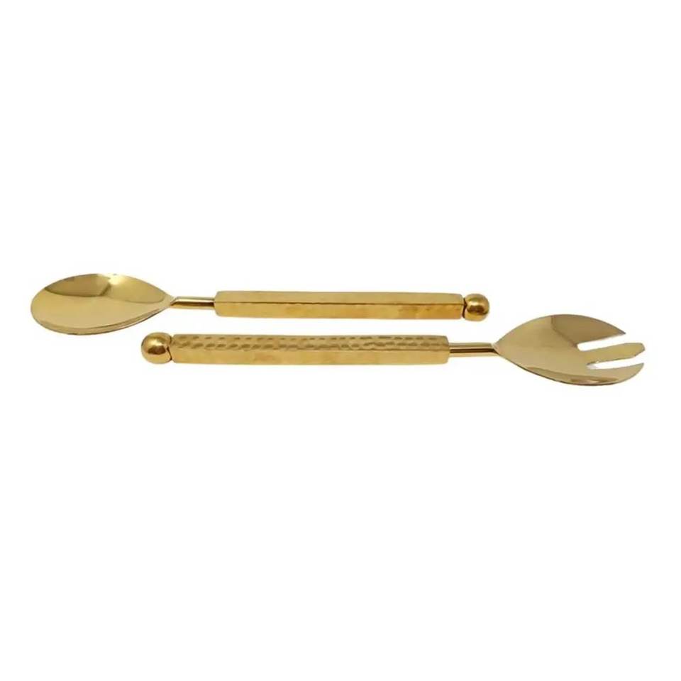 Nouveau design : Serveur à salade en acier inoxydable avec poignée en laiton doré, compatible lave-vaisselle, luxe moderne pour la maison et les hôtels