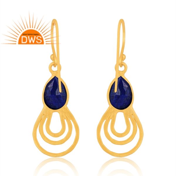 Dernier modèle de boucles d'oreilles en argent sterling plaqué or 18 carats avec pierres précieuses en lapis lazuli naturel Fabricant de bijoux