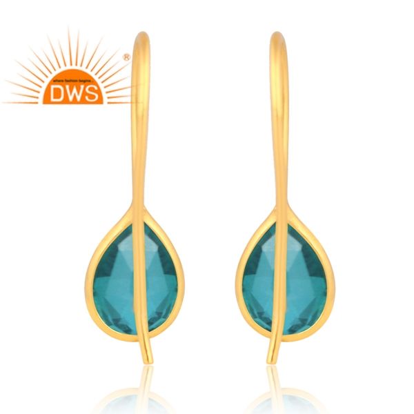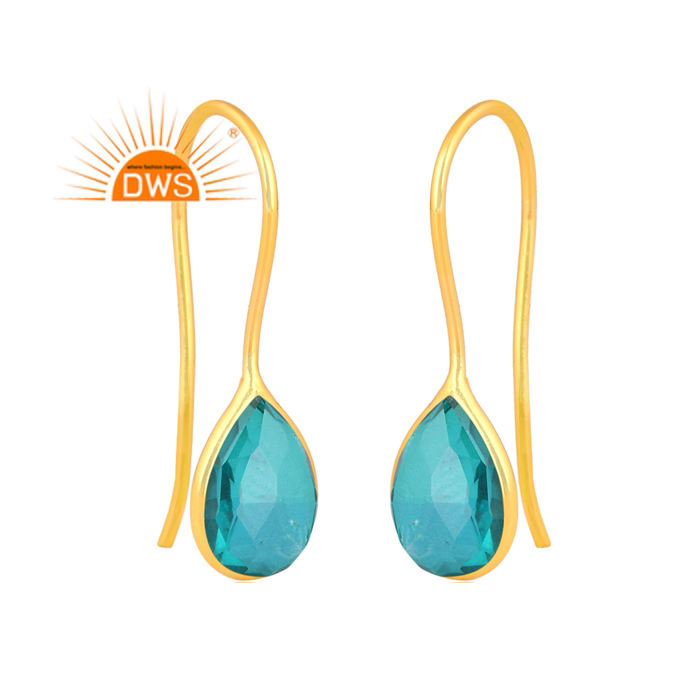 Dernier modèle de boucles d'oreilles en argent sterling plaqué or 18 carats doublet Santamaria Aquamarine Quartz Gemstone Dangle Fabricant de bijoux