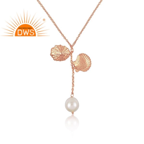 Dernier modèle de collier à pendentif en argent sterling plaqué or rose avec perle naturelle Demi Fine Jewelry Manufacturer
