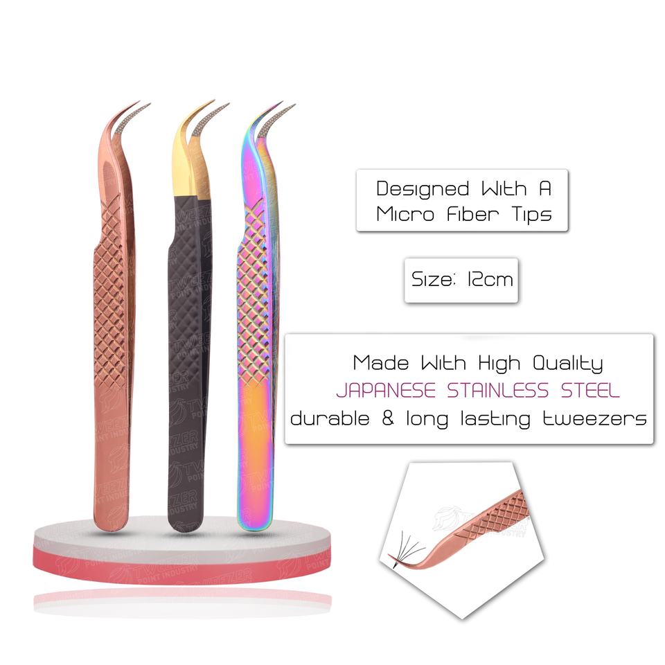 Ensemble de pinces à cils incurvées en acier inoxydable de dernière conception, outil d'extension de cils à pointe en fibre pour la cueillette et le greffage