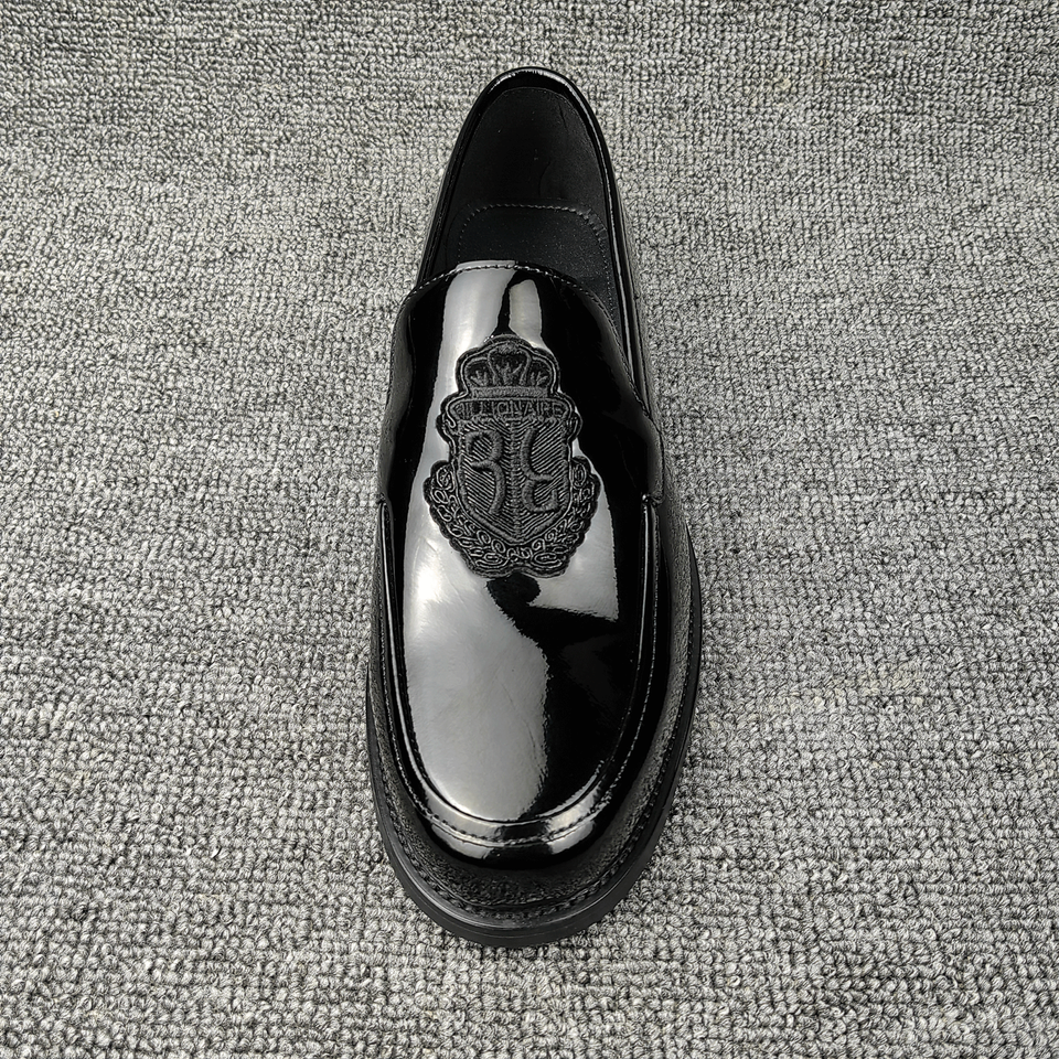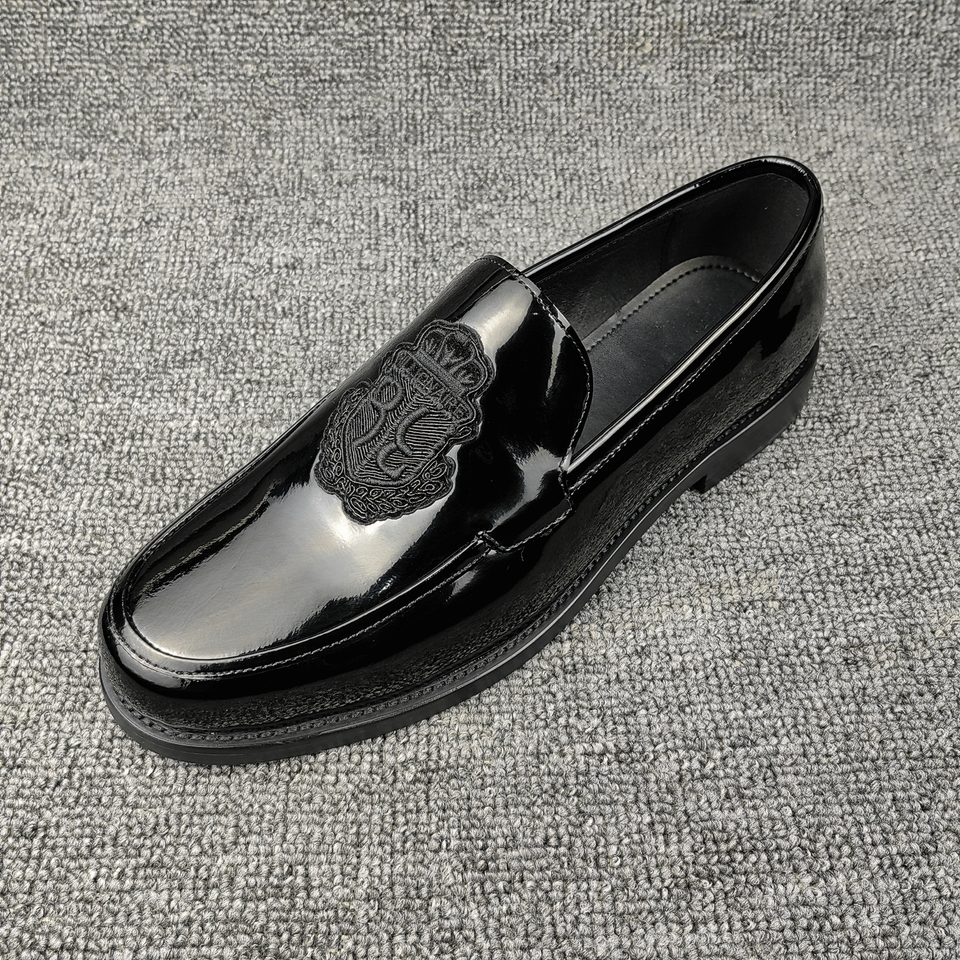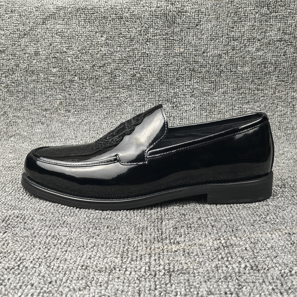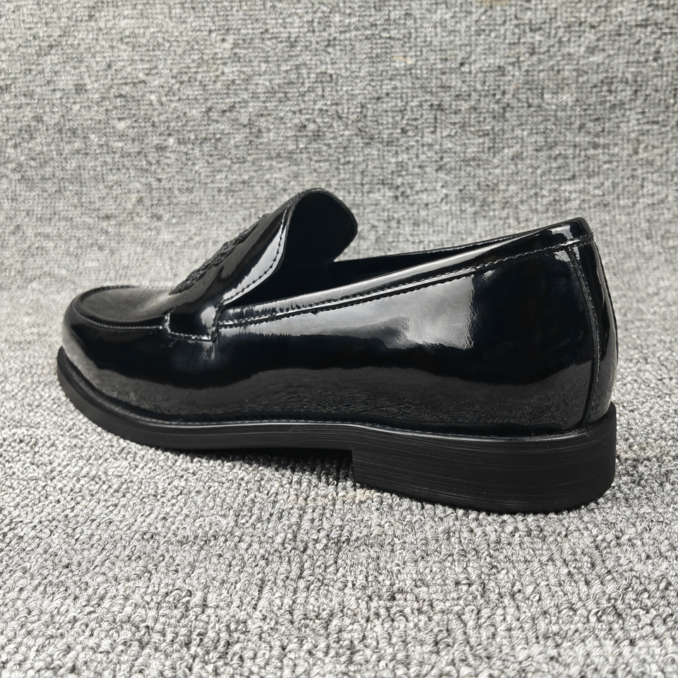 Dernier modèle de mocassins à enfiler en cuir verni noir à semelle épaisse - Chaussures de bureau et de carrière pour hommes, confortables, élégantes et fabriquées à la main