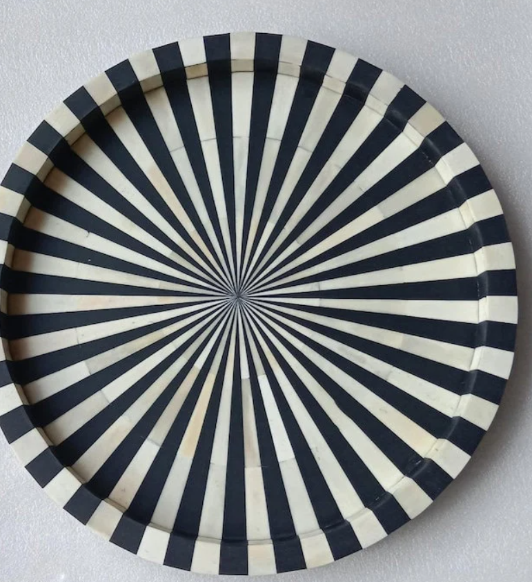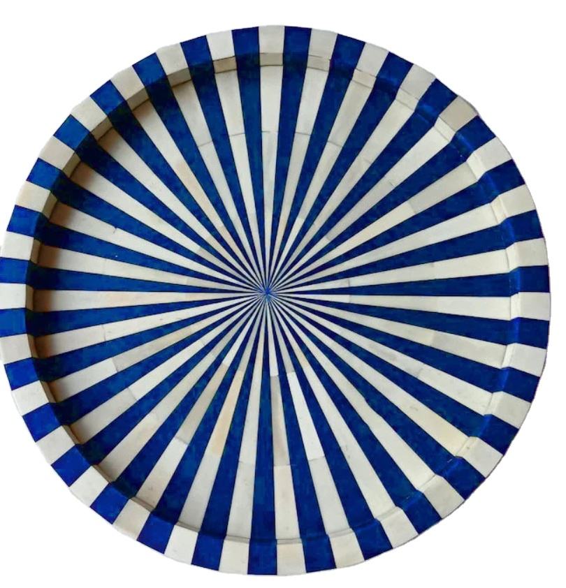 Dernier design et plateau de service de qualité supérieure en résine noire naturelle incrustée d'os pour la maison, les restaurants et les hôtels