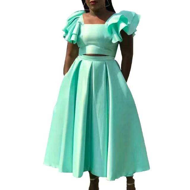 Nouveau design ensemble deux pièces vêtements pour femmes manches volantées col carré haut jupe trapèze ensemble deux pièces tenues pour femmes