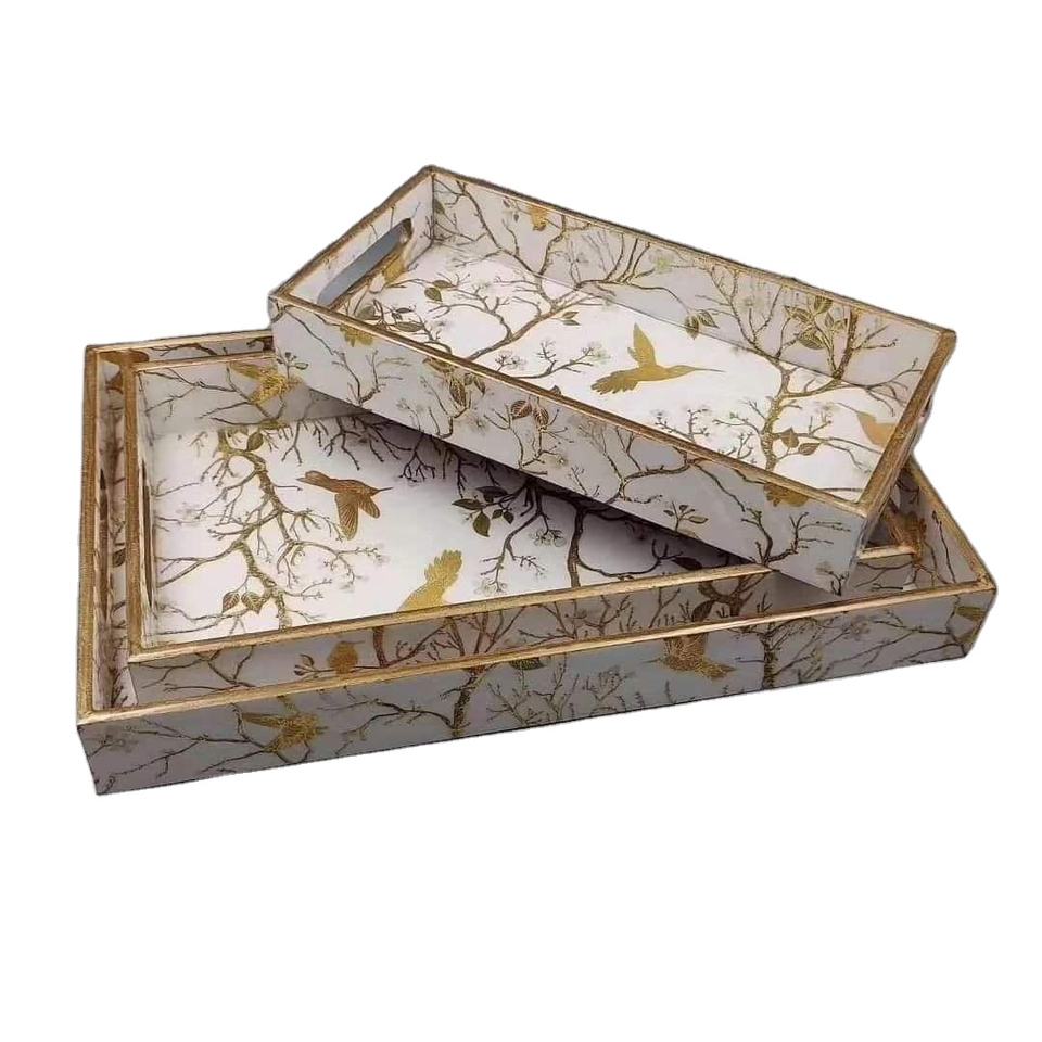 Plateau de service en bois et émail imprimé, charmant, pour une présentation élégante lors d'événements, plateau de service artisanal de haute qualité
