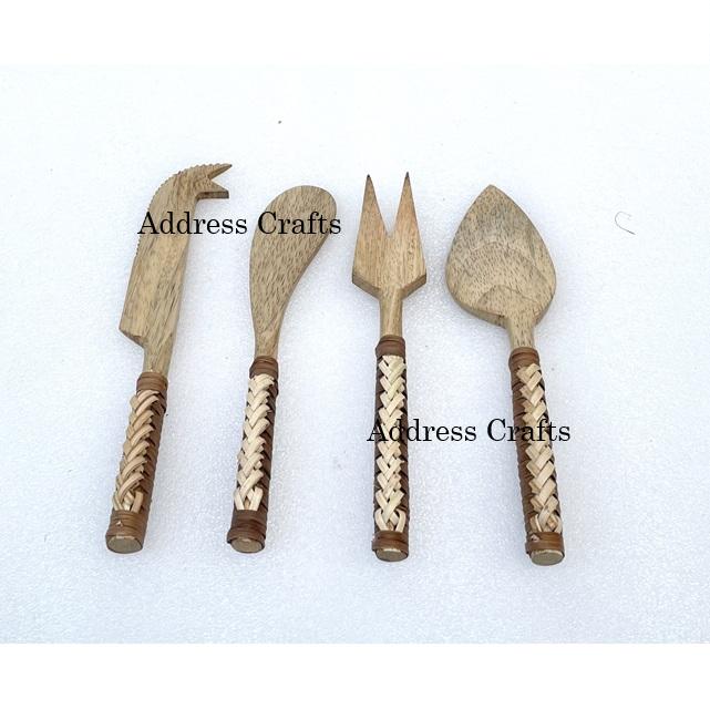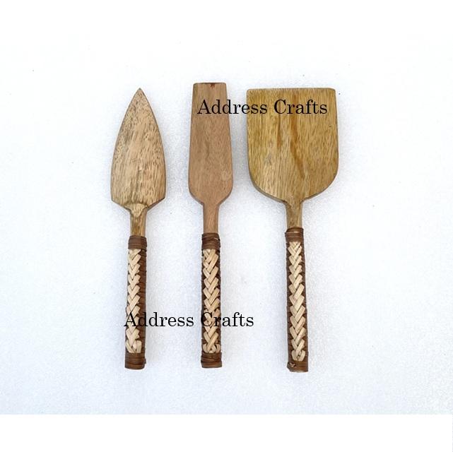 Dernier modèle Ensemble de 3 couteaux à fromage en bois Meilleur vendeur Couteaux à fromage faits à la main avec manche en osier Vaisselle Fourchette Couteau à tartiner
