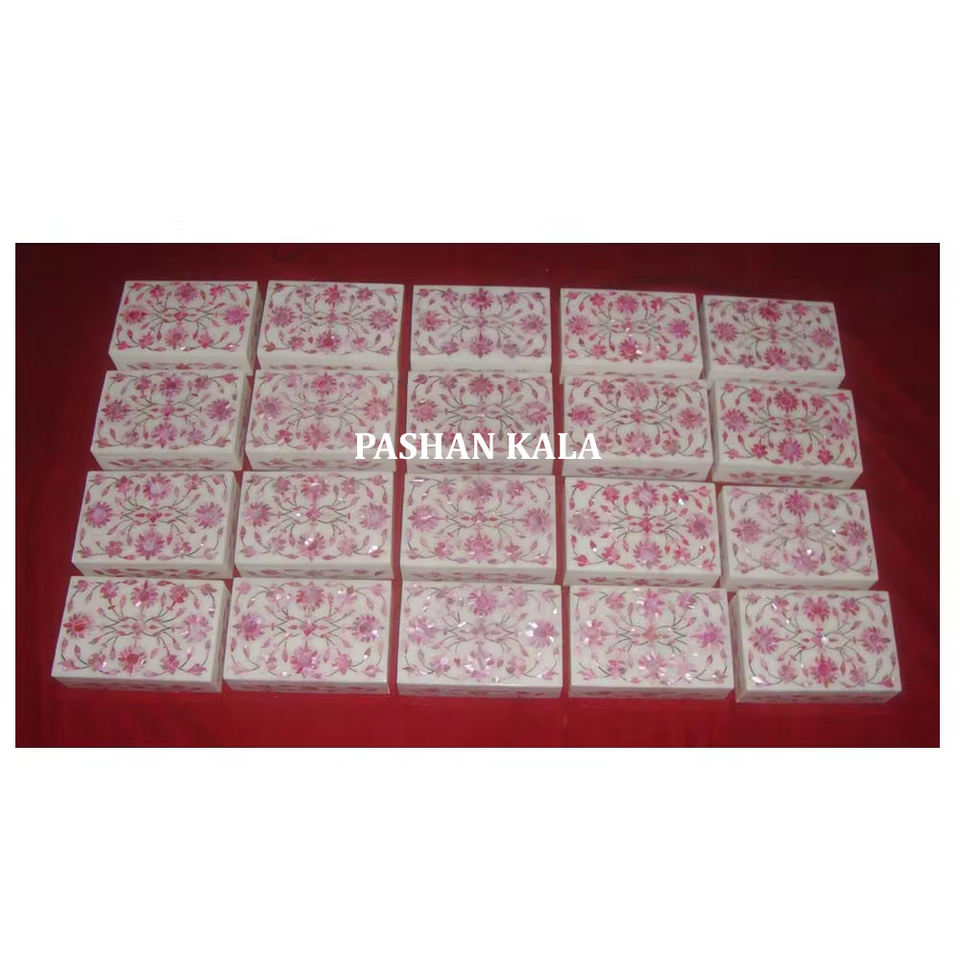Dernier modèle de boîte à bijoux en nacre rose incrustée de marbre blanc de forme rectangulaire pour cadeau d'entreprise et bague de mariage