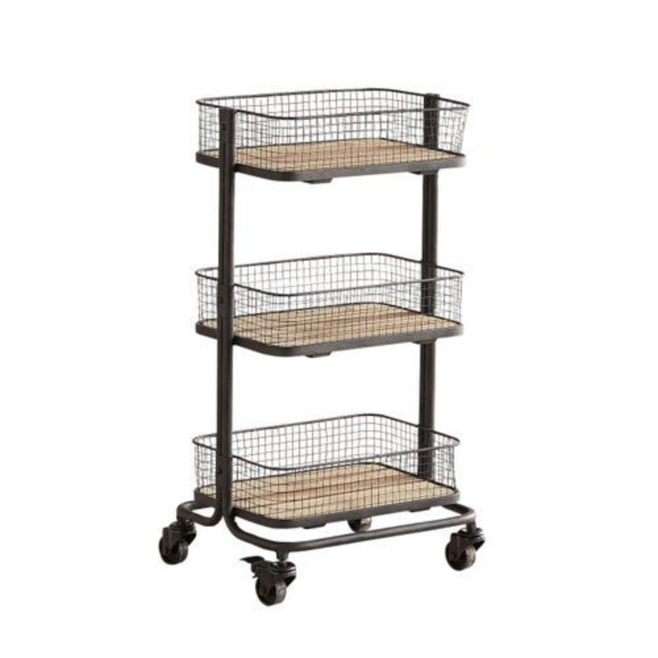 Latest Designer 4 Tier Slim Storage Cart Rolling Utility Cart On Wheels With Wooden Top And Metal Handle For Kitchen Small Space