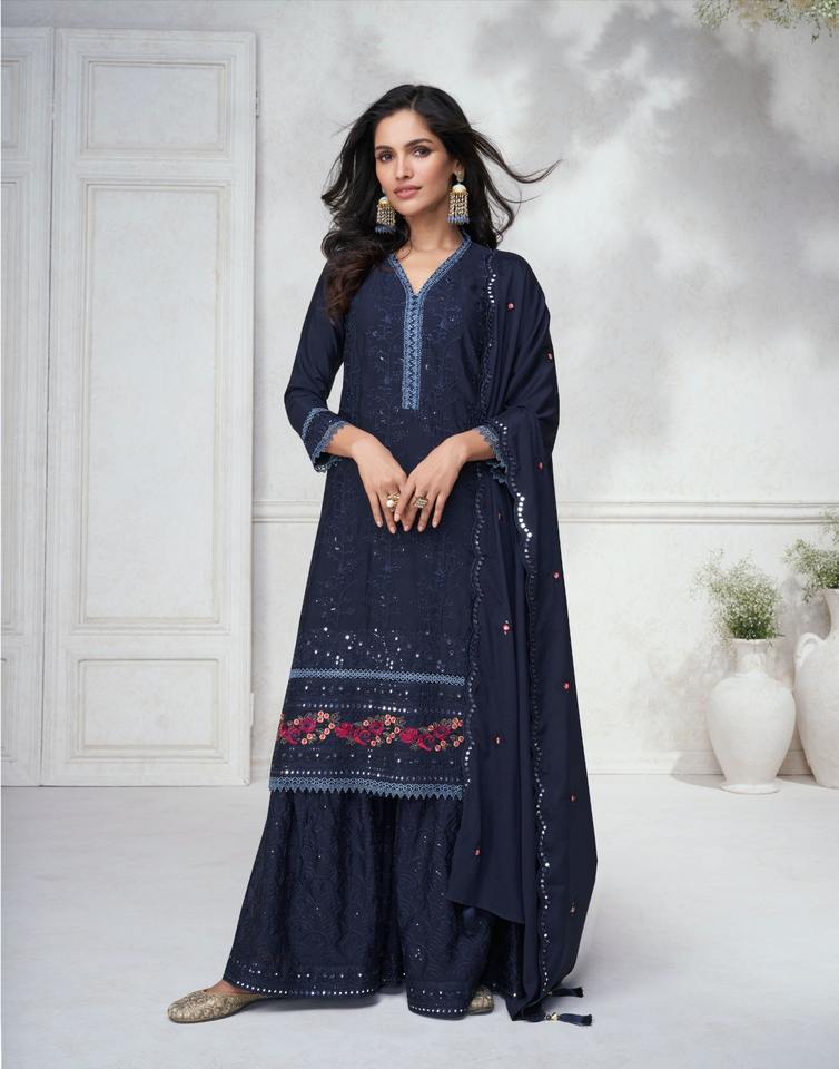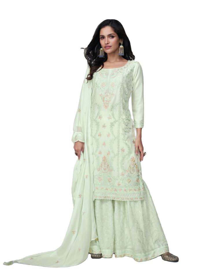 Dernier Designer Chinon Soie Broderie Séquence Travail Sharara Costume Par Fab Zone