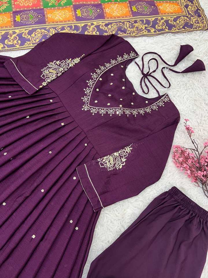 Dernier Designer Chinon Soie Broderie Séquence Travail Anarkali Robe
