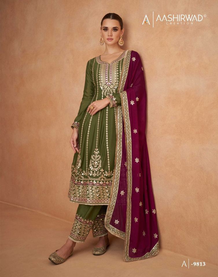 Dernier Designer Chinon Soie Broderie Travail Salwar Costume Par Fab Zone