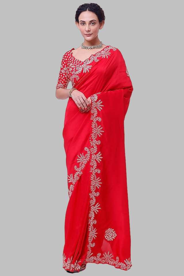 Dernier Designer Chinon Soie Fantaisie Broderie Codage Séquence Travail Saree Par Fab Zone