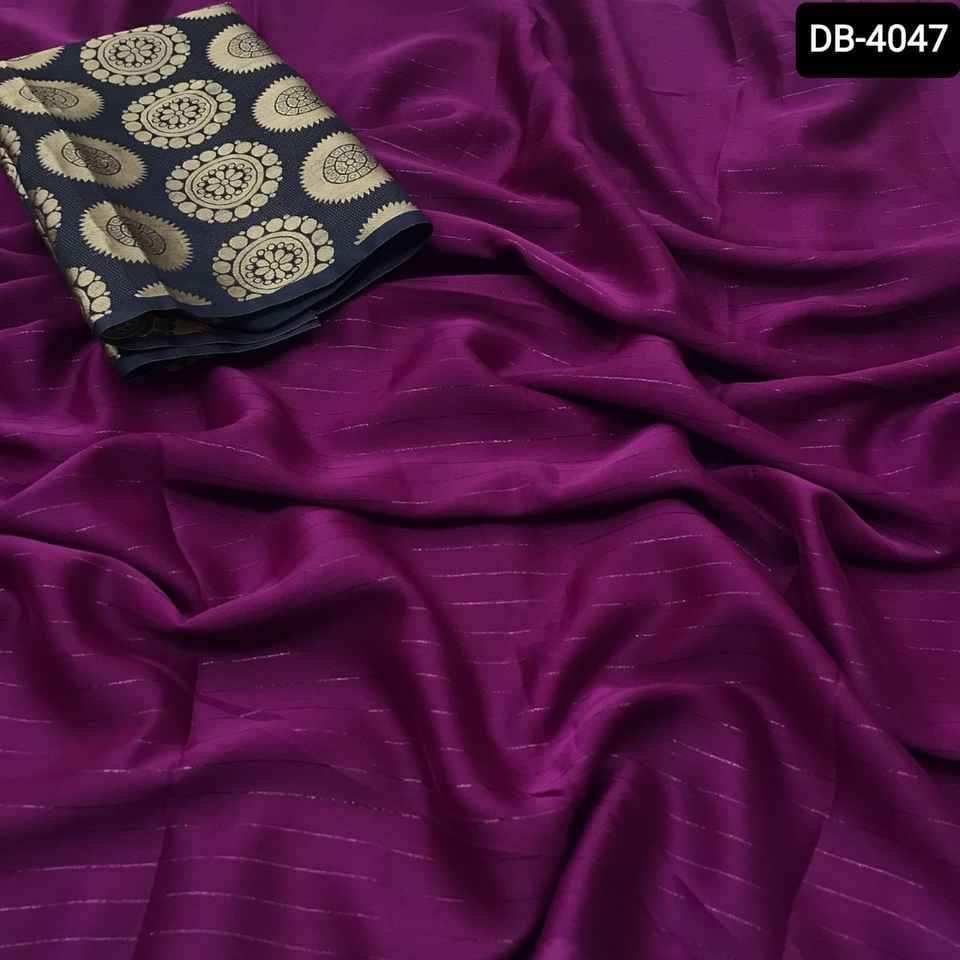 Dernier modèle de sari en georgette unie, style créateur, magnifique, avec broderie Zari arc-en-ciel, et chemisier fantaisie en brocart coloré pour femme, idéal pour les soirées.
