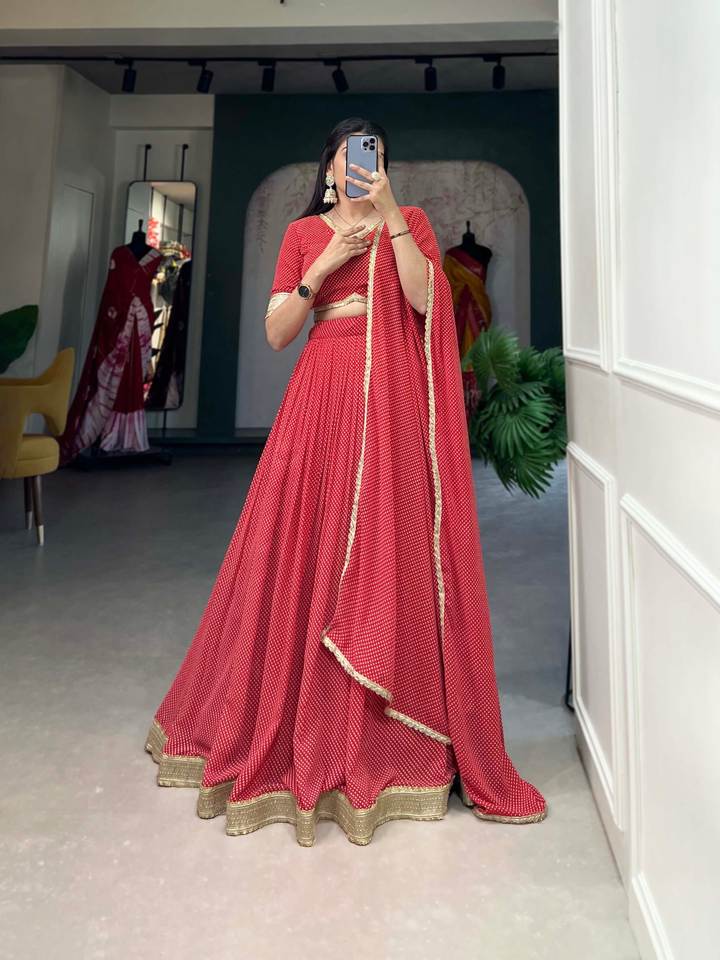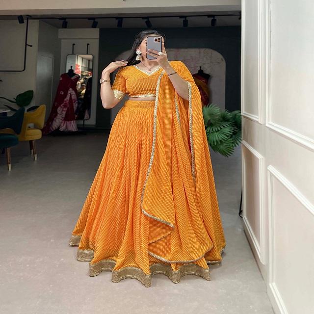 Dernier Designer Fab Zone Georgette Badhani Travail Imprimé Lehenga Choli Haute Qualité Ethniquement Stylé Adultes Spécial Festif