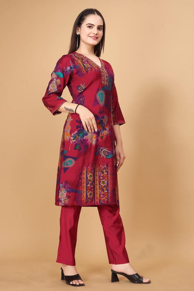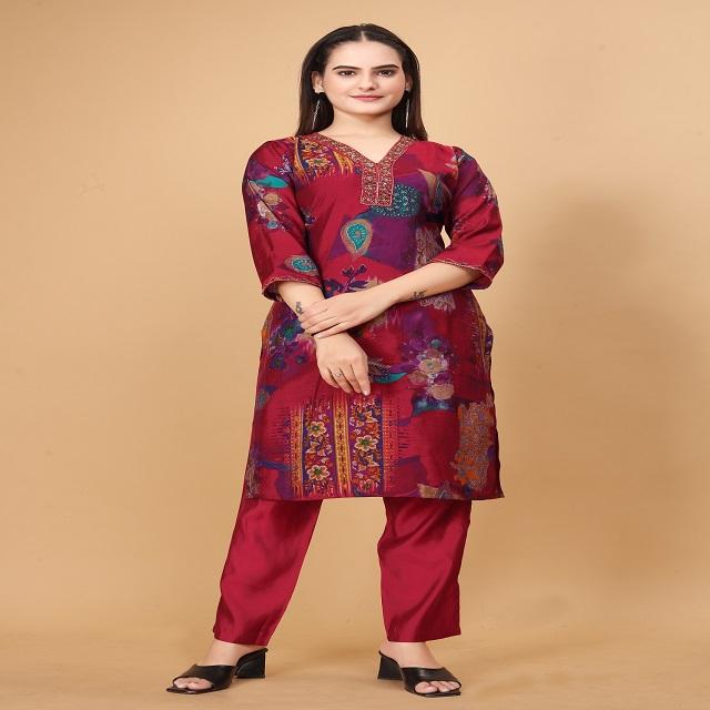 Dernier Designer FabZone Viscose Soie Imprimé Travail Kurti Set Haute Robe Pakistanaise Adultes Filles Mariage Comprend Salwar Sari
