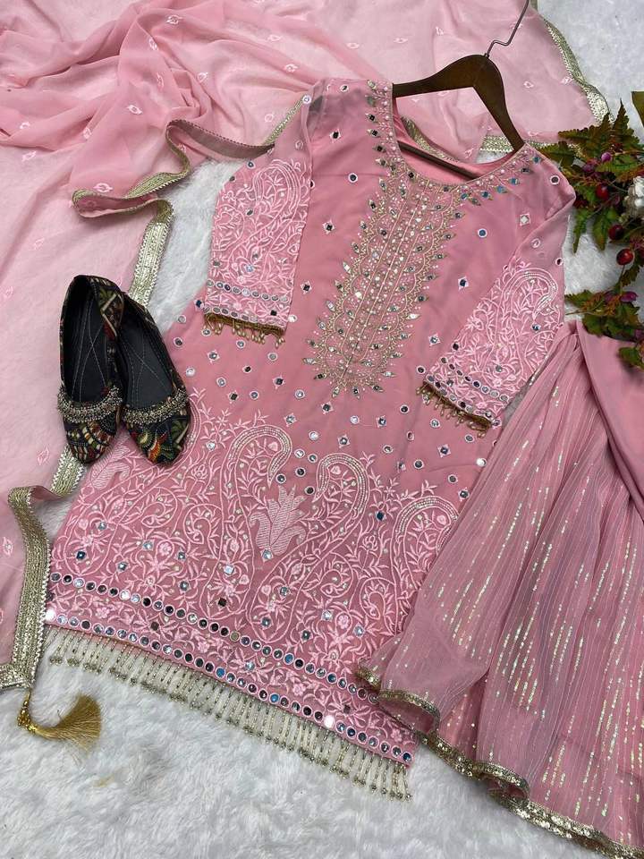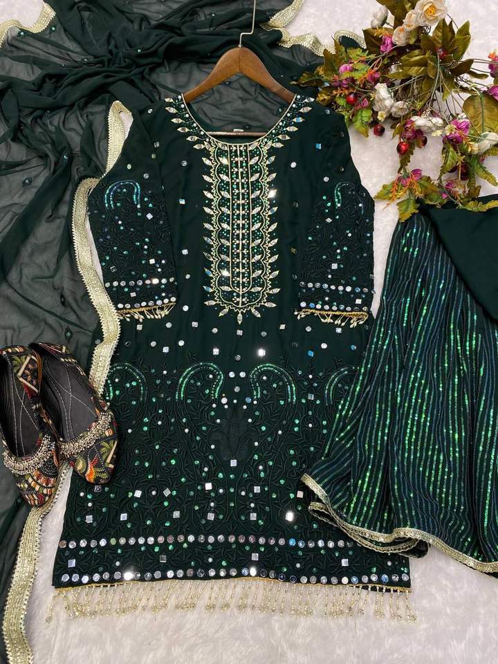 Dernier Designer Faux Georgette Broderie Séquence Travail Sharara Costume Par FabZone
