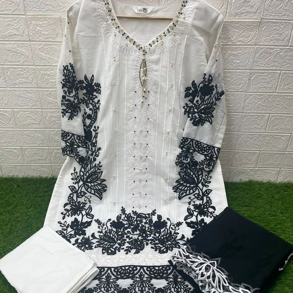 Dernier Designer Faux Georgette Broderie Travail Salwar Costume Indien & Pakistanais Vêtements par FabZone