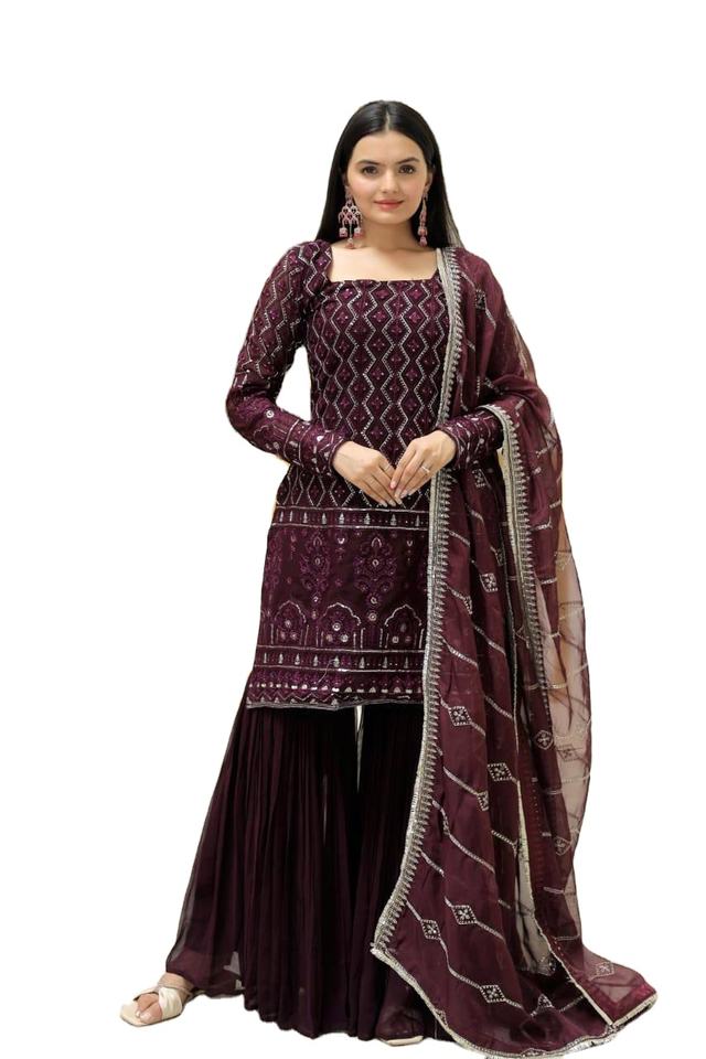 Faux Georgette Sequence Work Sharara Suit Vêtements indiens et pakistanais par Fab Zone