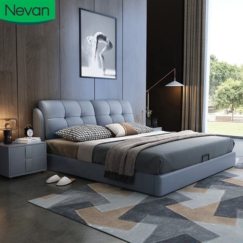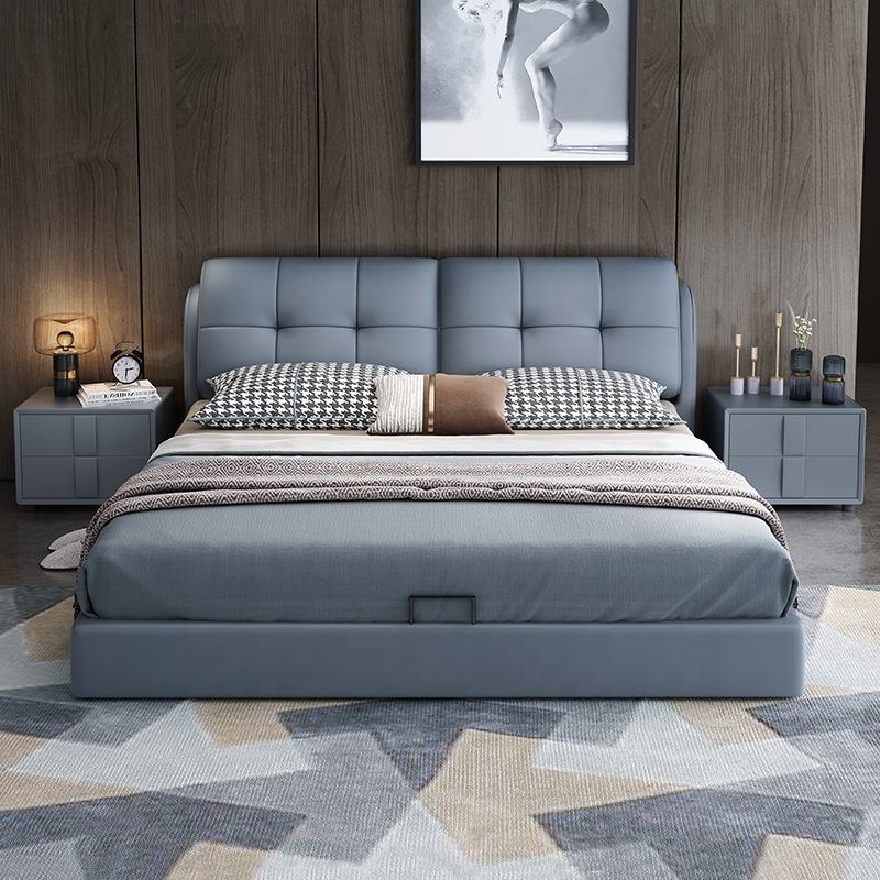 Derniers meubles design populaires 180x200 rangement couchage faux cuir en bois double king size lits rembourrés