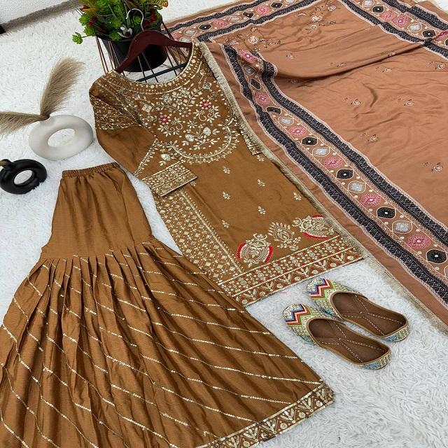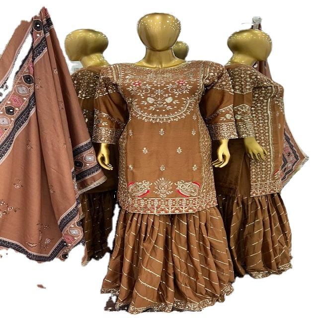 Costume Sharara de travail de séquence de broderie de chinon lourd de dernier concepteur par FabZone