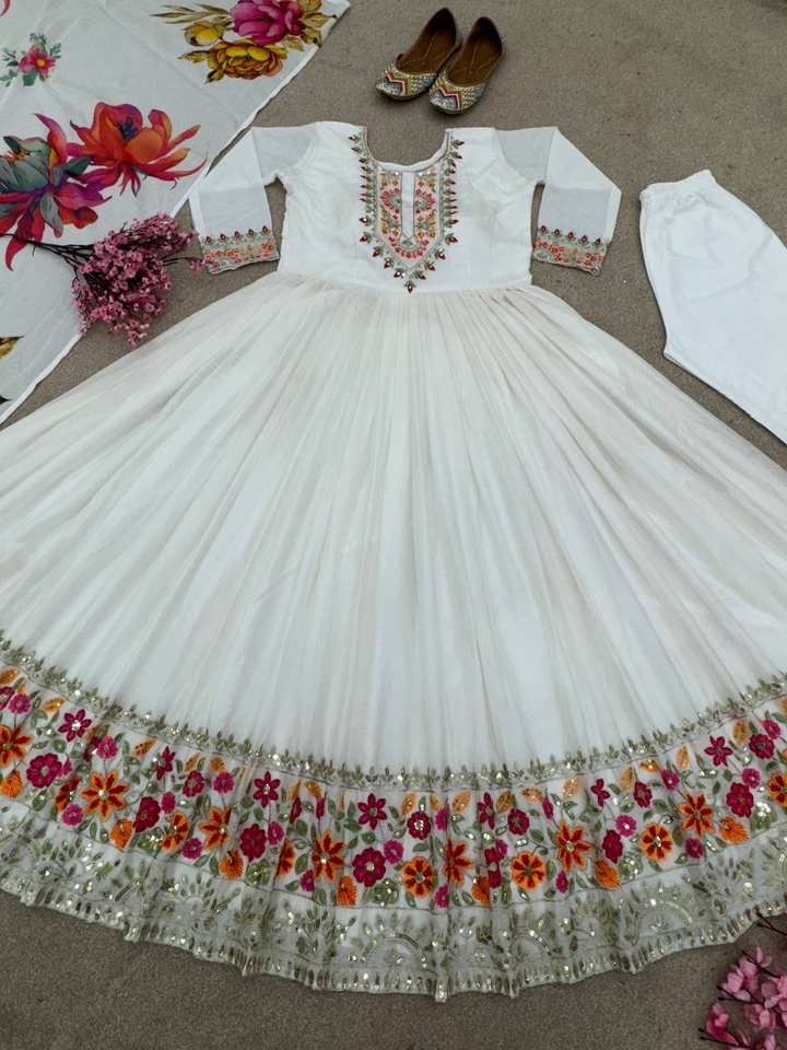 Dernier Designer Lourd Chinon Soie Broderie Travail Anarkali Robe Par FabZone