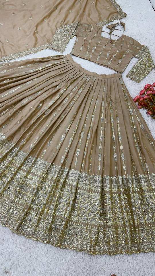 Latest Designer Heavy Chinon Silk Embroidery Sequence Work Lehenga Choli by FabZone