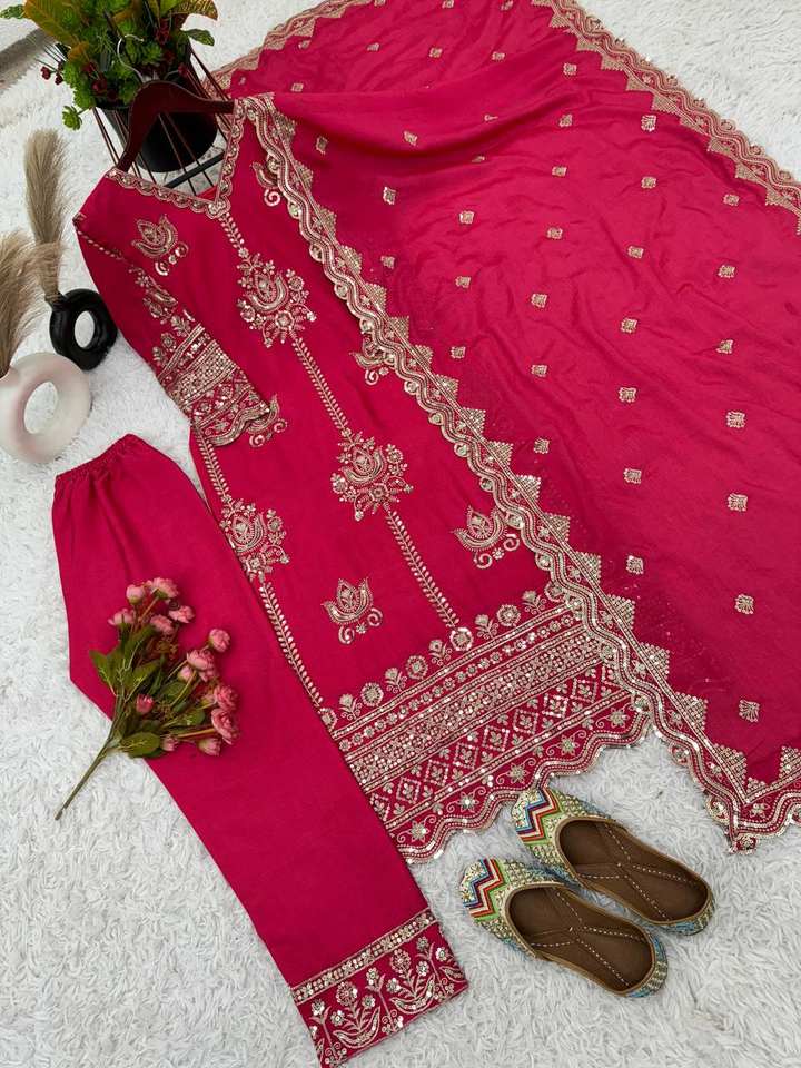 Dernier Designer Lourd Chinon Soie Broderie Séquence Travail Kurti Set Par FabZone