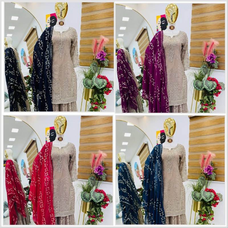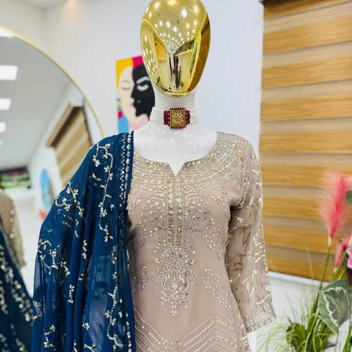 Dernier modèle de costume palazzo indien pakistanais de créateur, avec broderie lourde au fil, en fausse soie Georgette confortable, et dupatta, idéal pour les fêtes