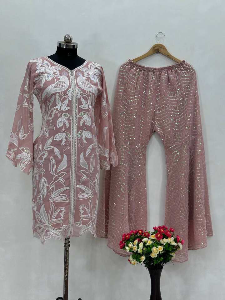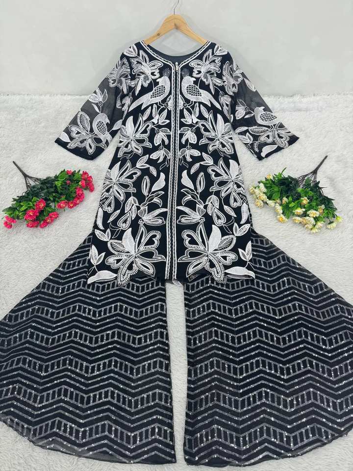 Dernier Designer Lourd Faux Georgette Broderie Séquence Travail Sharara Costume Par FabZone