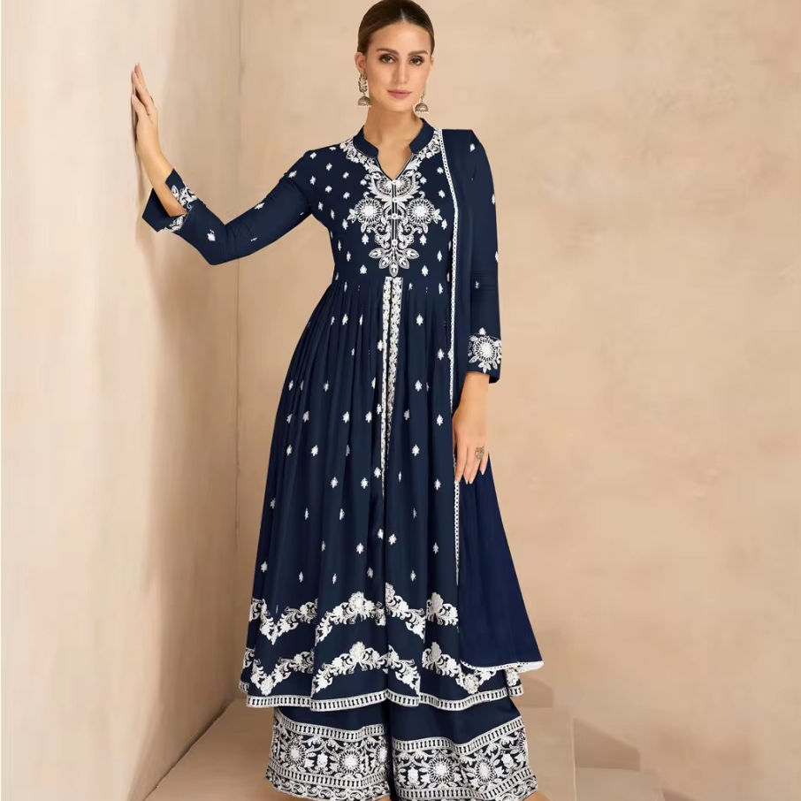 Dernier modèle de costume Sharara en fausse fourrure avec broderie lourde en fil de rayonne pour les fêtes et festivals des femmes par Fab Zone Haute qualité