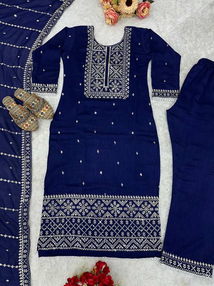 Ensemble Kurti de travail de séquence de broderie de soie lourde de dernier concepteur par FabZone vêtements indiens et pakistanais