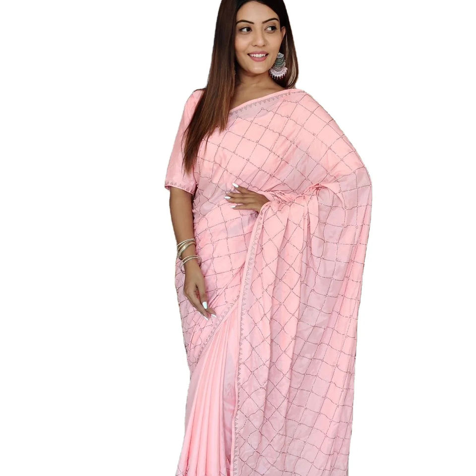 Sari en soie lourde de créateur dernier cri avec gros diamants et pierres Saree élégant et luxueux
